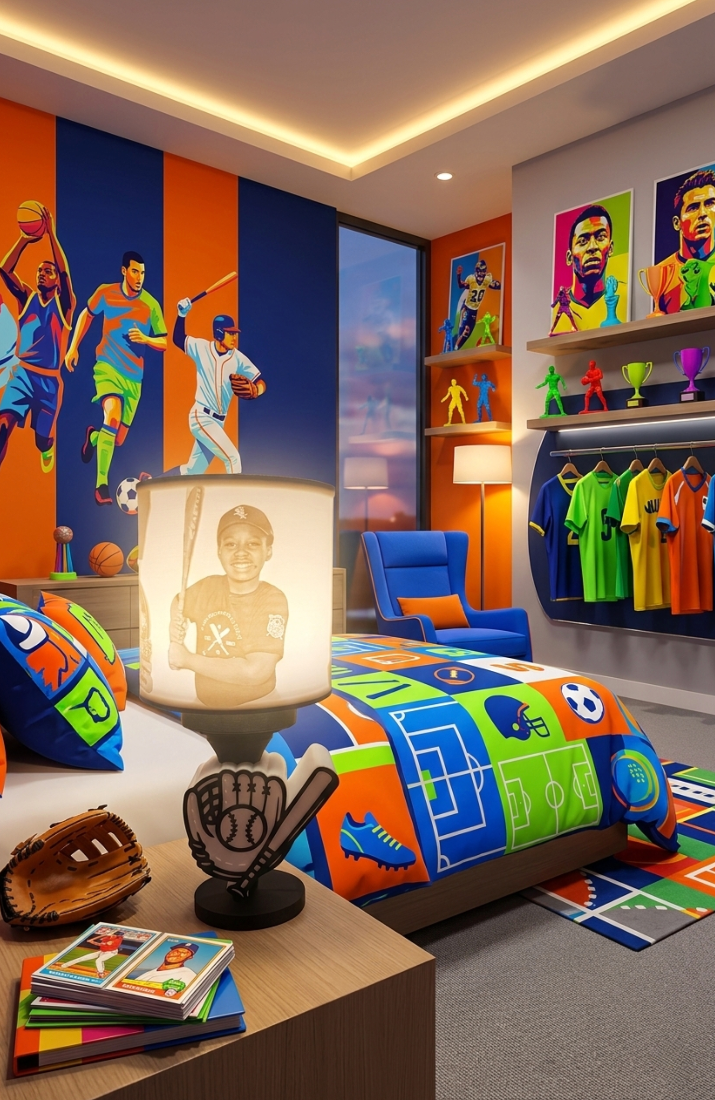 Illuminate your space with a custom sport lamp featuring your favorite photos. This personalized lamp combines functional lighting with meaningful imagery, perfect for bedrooms, dorm rooms, or sports enthusiasts' spaces. Each lamp is custom-crafted with quality materials and your selected photos printed directly onto the design.